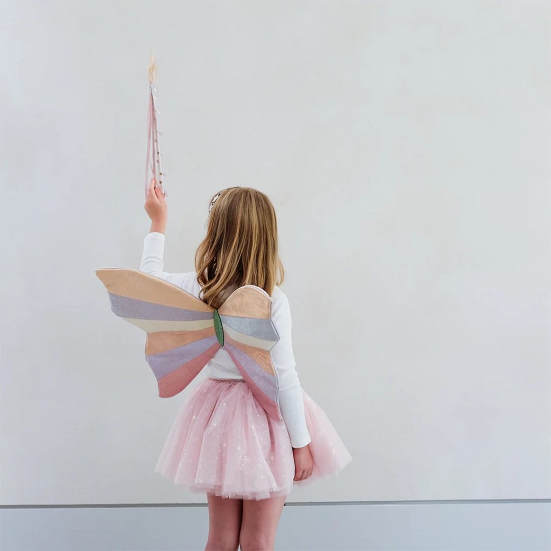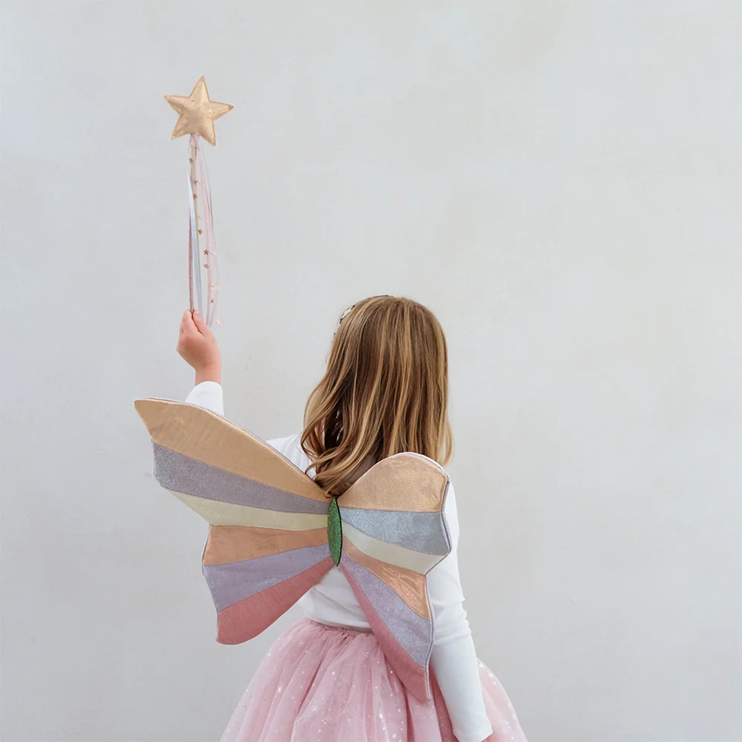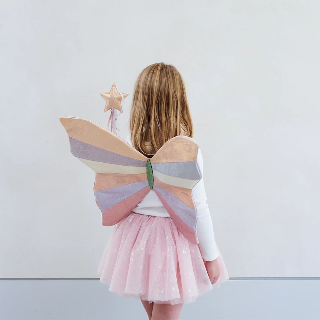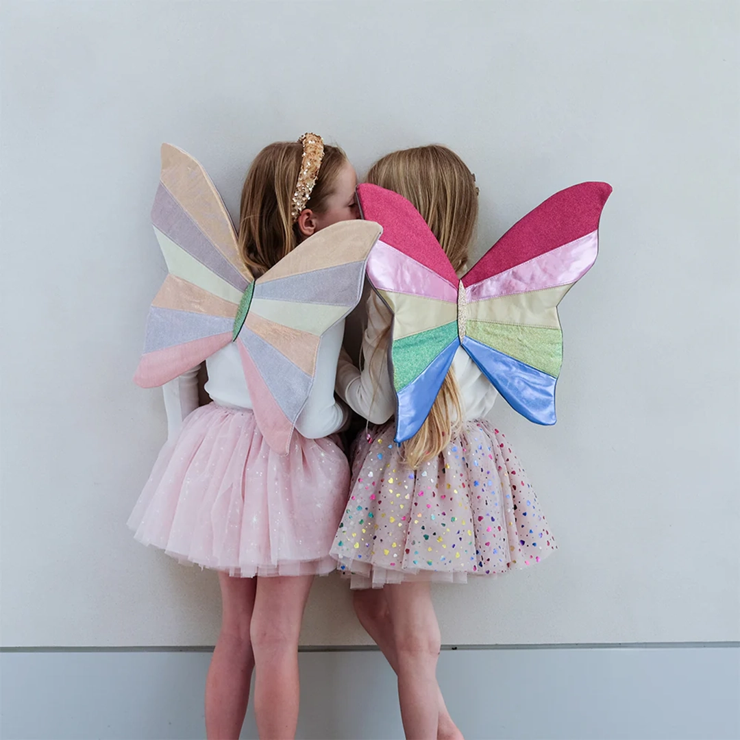 Mimi & Lula Sparkly Intergalactic Kanat, en çok satan galaktik kanatlarımızı daha da özel hale getiriyor! Hafif ışıltılı kumaşların en güzel kombinasyonundan üretilen bu kanatlar, her küçük kostüm tutkunu için büyüleyici bir aksesuar.